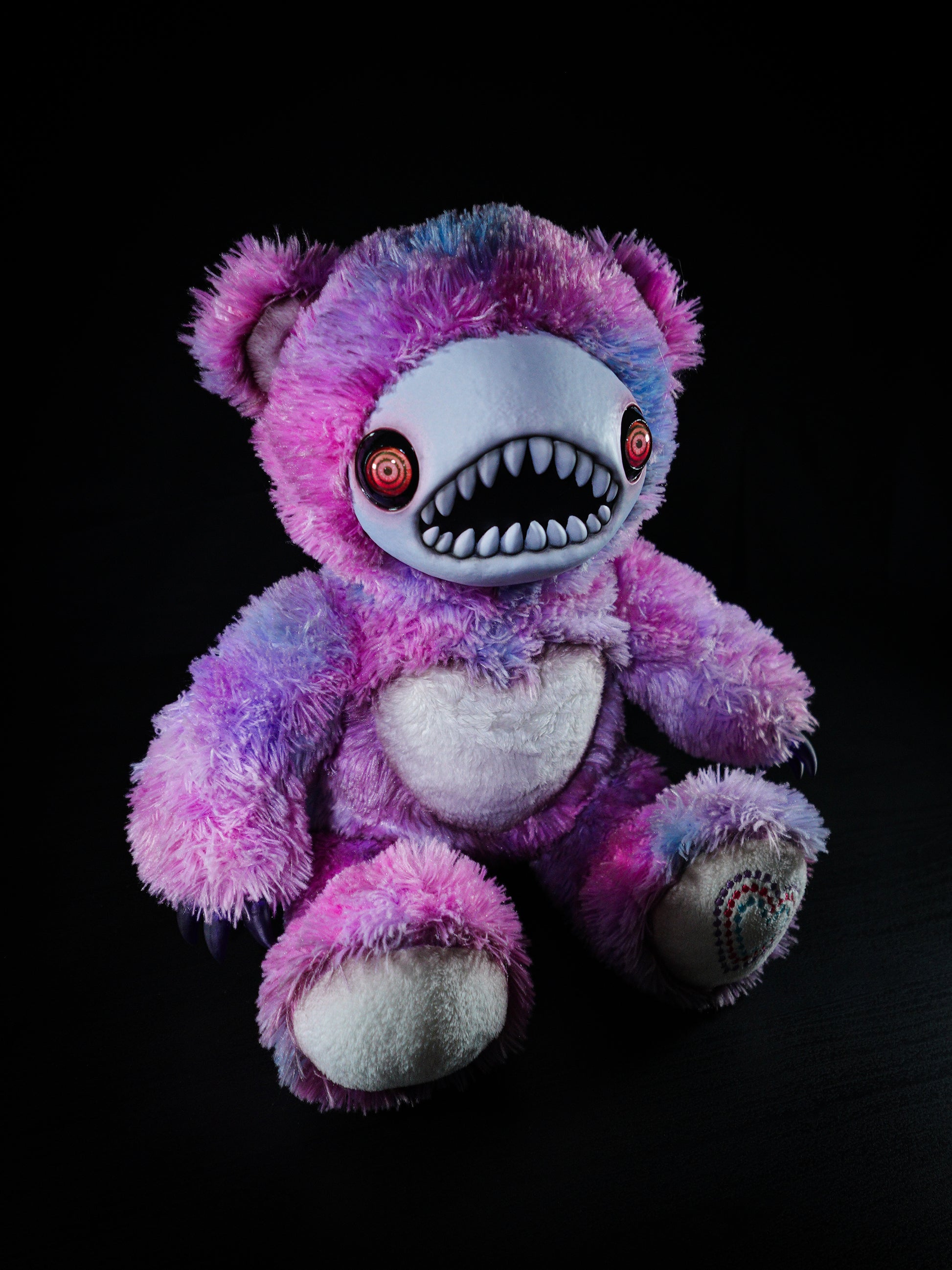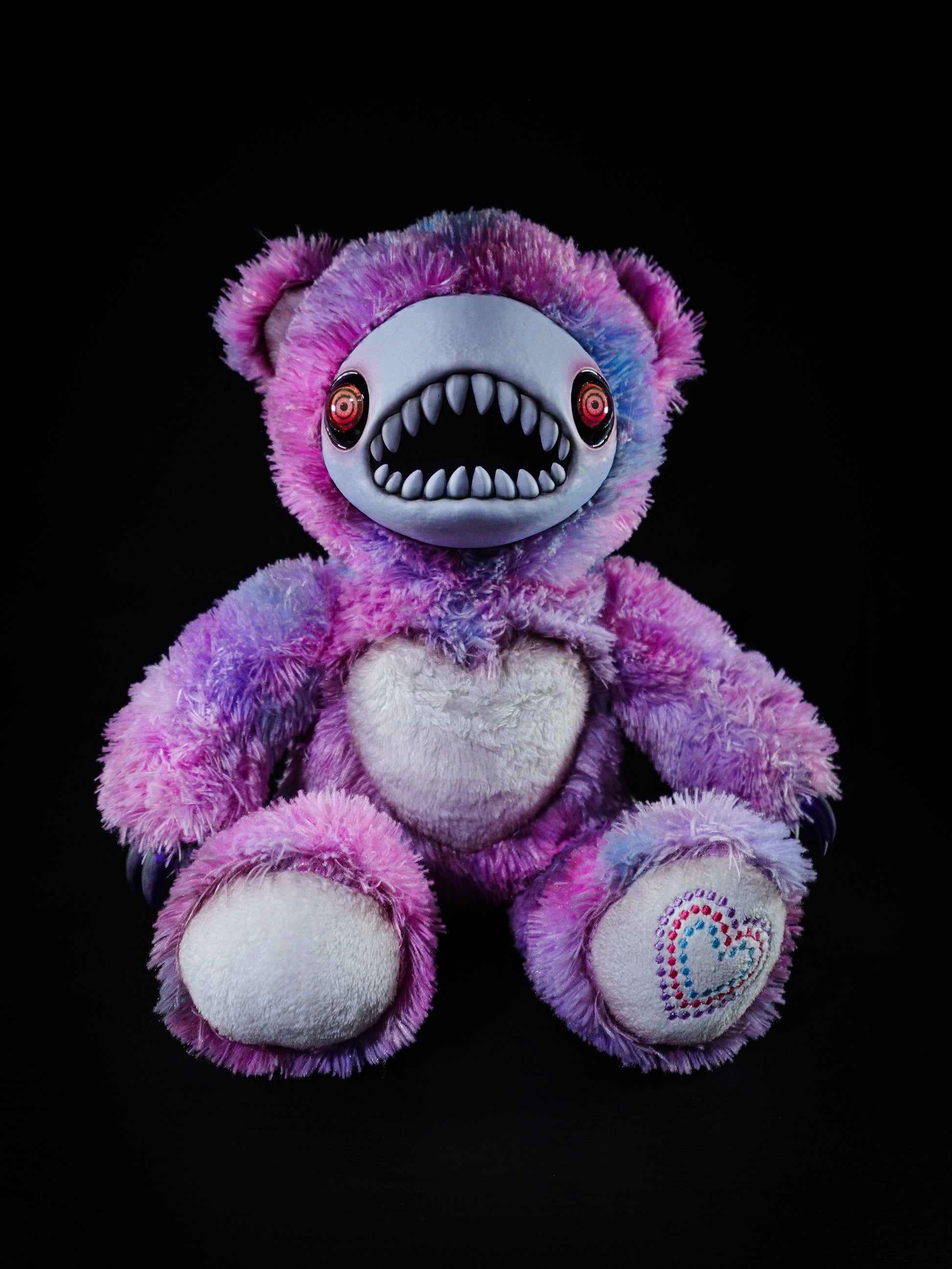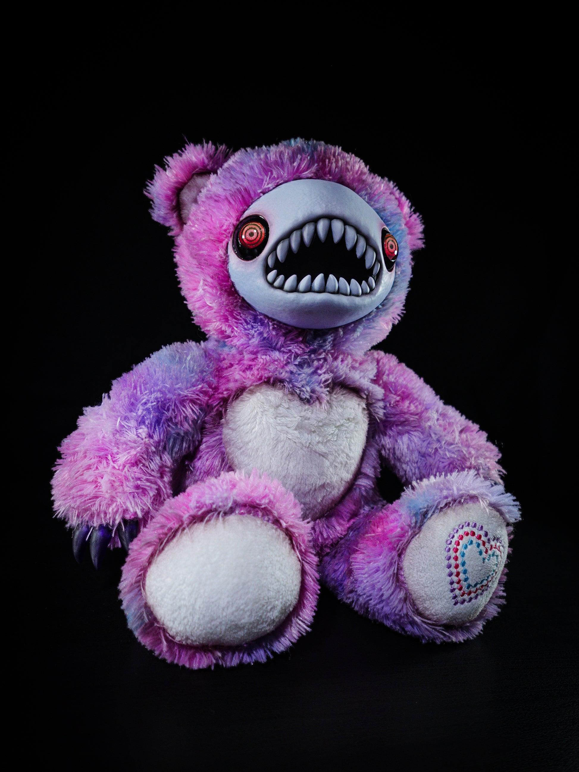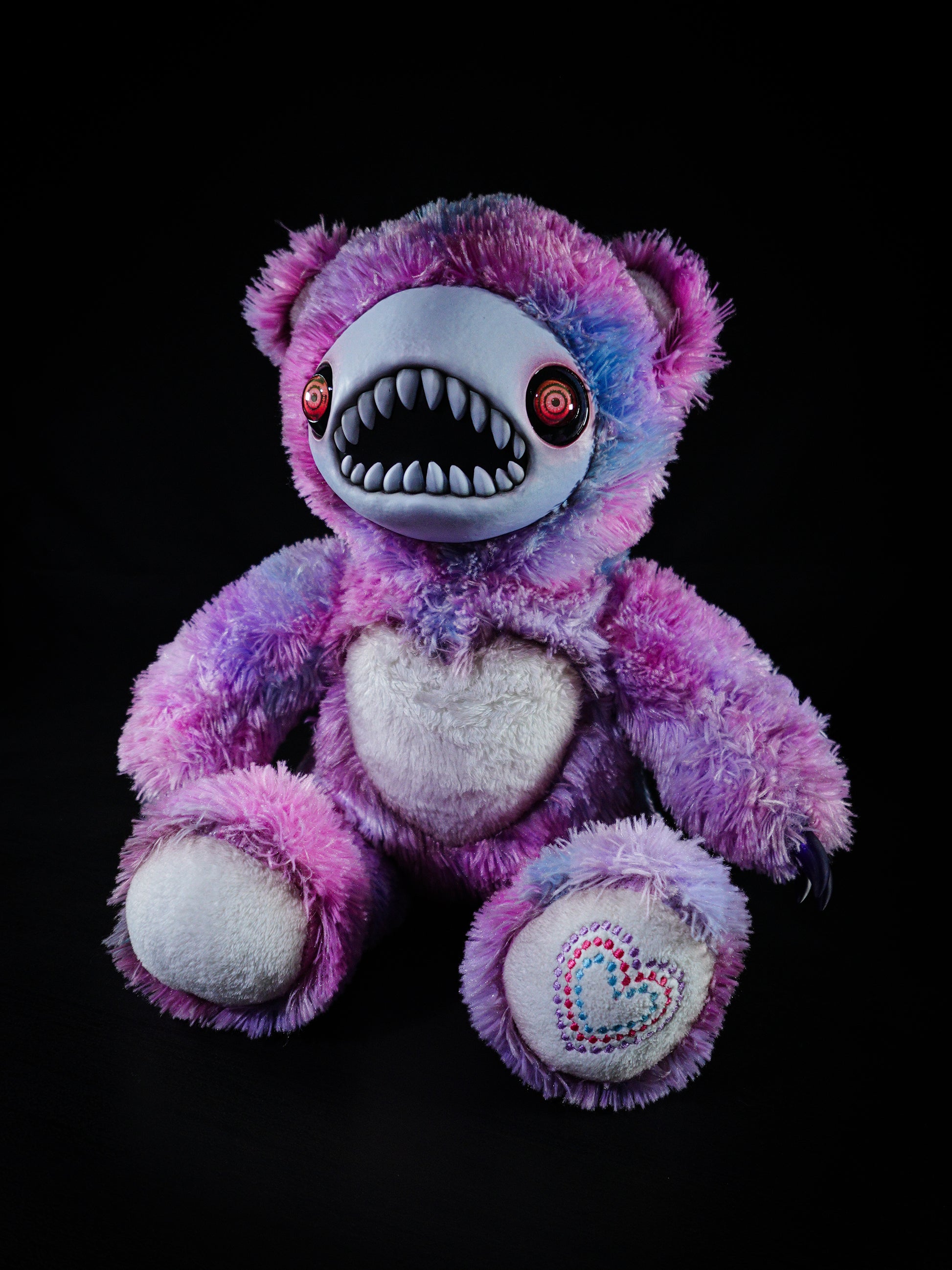 This 13-inch howling beast is meticulously handcrafted, blending bespoke craftsmanship and gothic charm. Crafted with 3D printed resin, its sculpted parts captivate with intricate details, while hand-painted strokes and airbrushing create an ethereal presence. Embrace the plush body, blurring the line between gothic artistry and cuddly companionship. Ready to ship in 1-2 days, this doll captures the essence of goth aesthetics, making it an ideal gift for alternative fashion enthusiasts. Experience the beauty in darkness with Skree, where creepy meets cute in it's anxious expression.