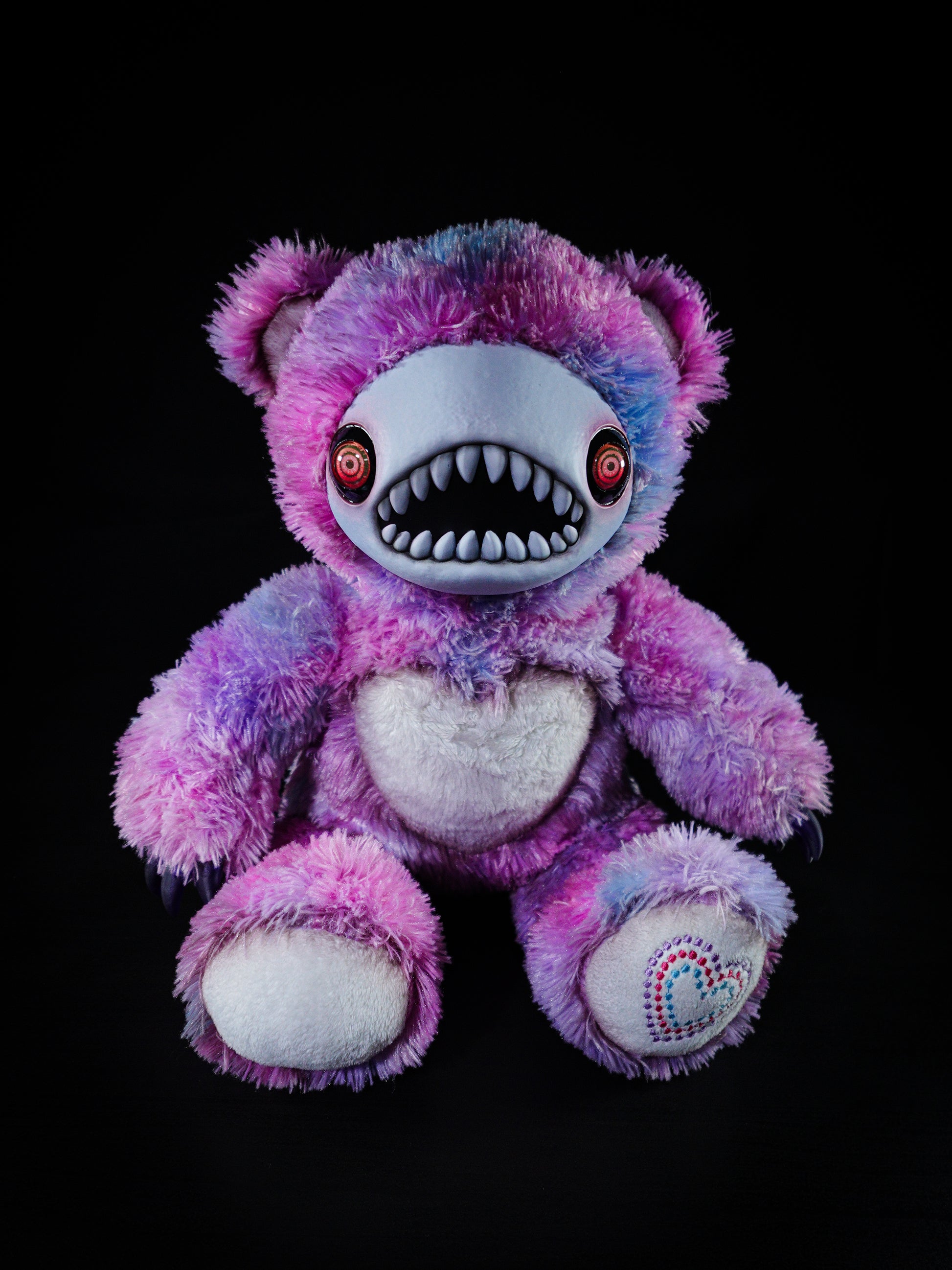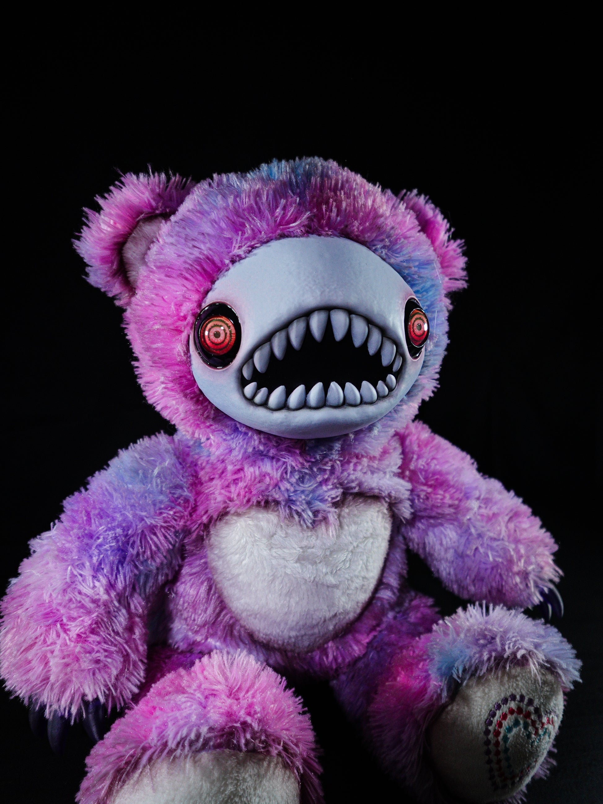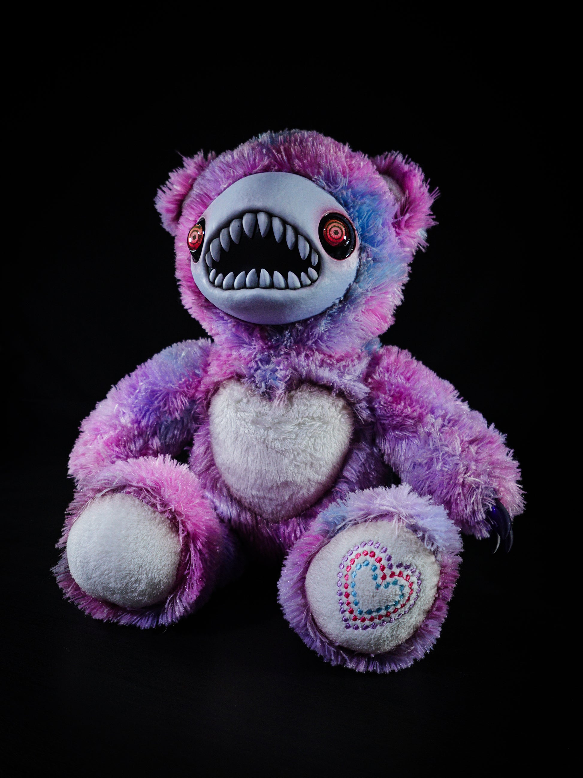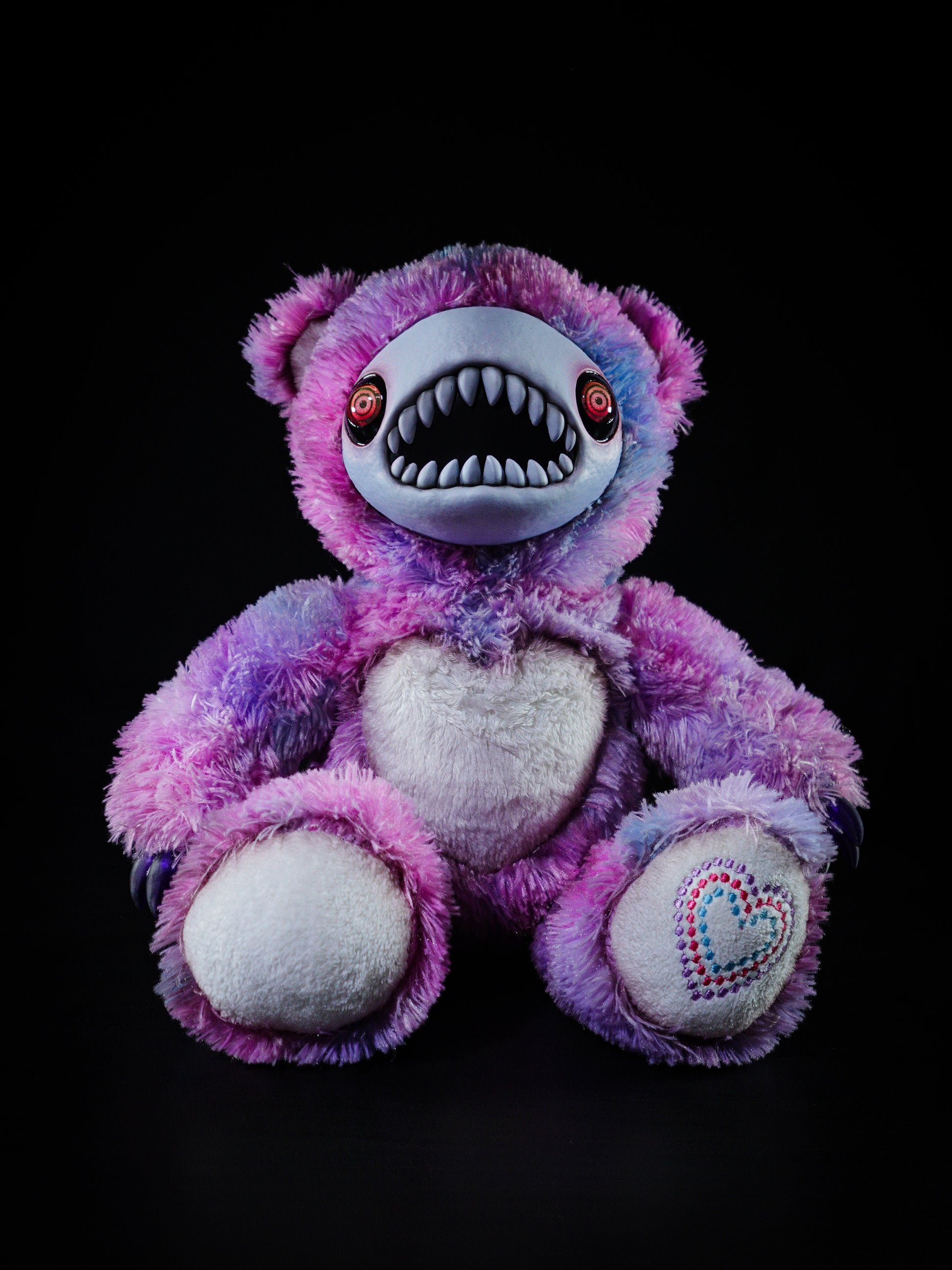 This 13-inch howling beast is meticulously handcrafted, blending bespoke craftsmanship and gothic charm. Crafted with 3D printed resin, its sculpted parts captivate with intricate details, while hand-painted strokes and airbrushing create an ethereal presence. Embrace the plush body, blurring the line between gothic artistry and cuddly companionship. Ready to ship in 1-2 days, this doll captures the essence of goth aesthetics, making it an ideal gift for alternative fashion enthusiasts. Experience the beauty in darkness with Skree, where creepy meets cute in it's anxious expression.