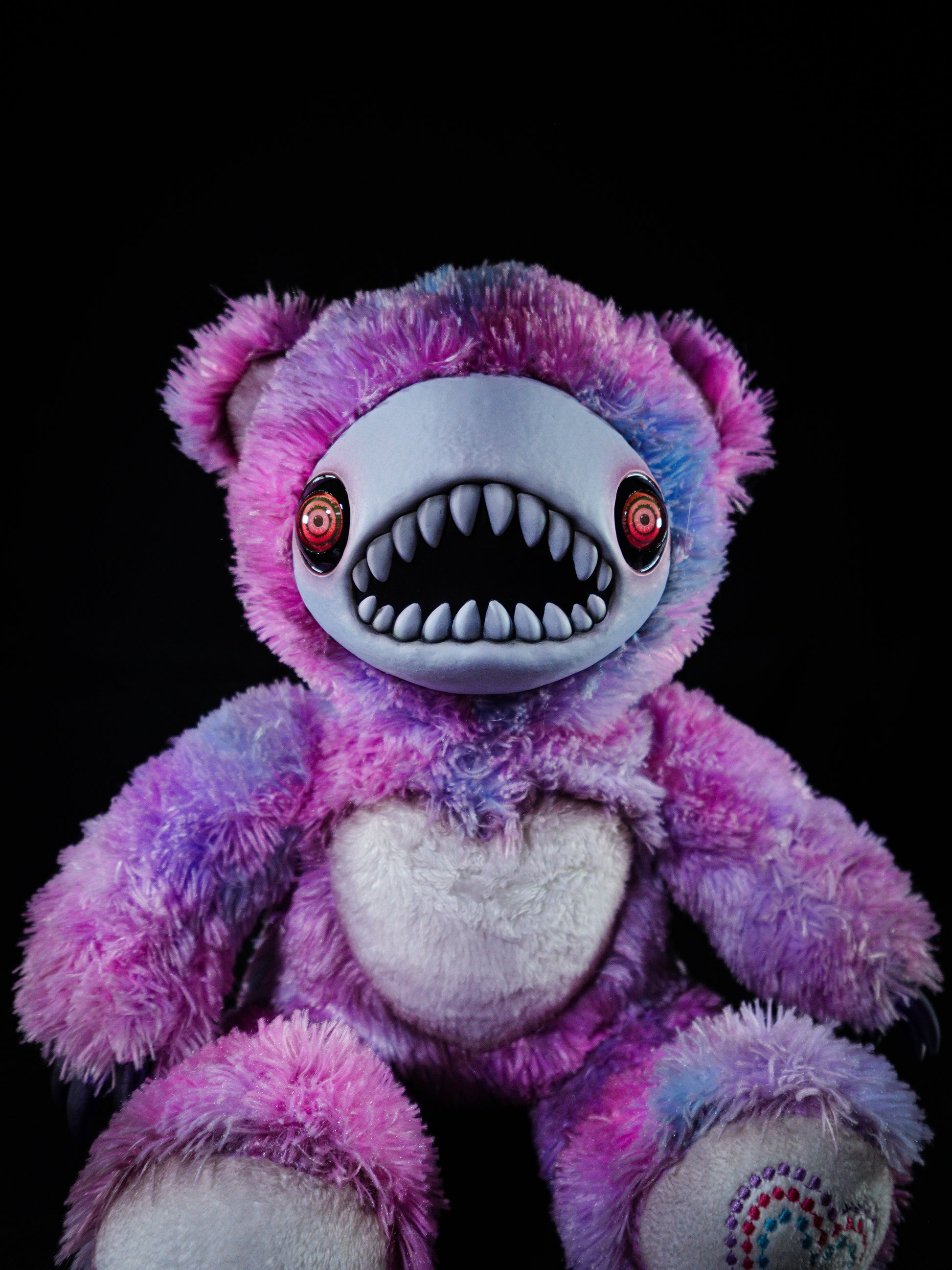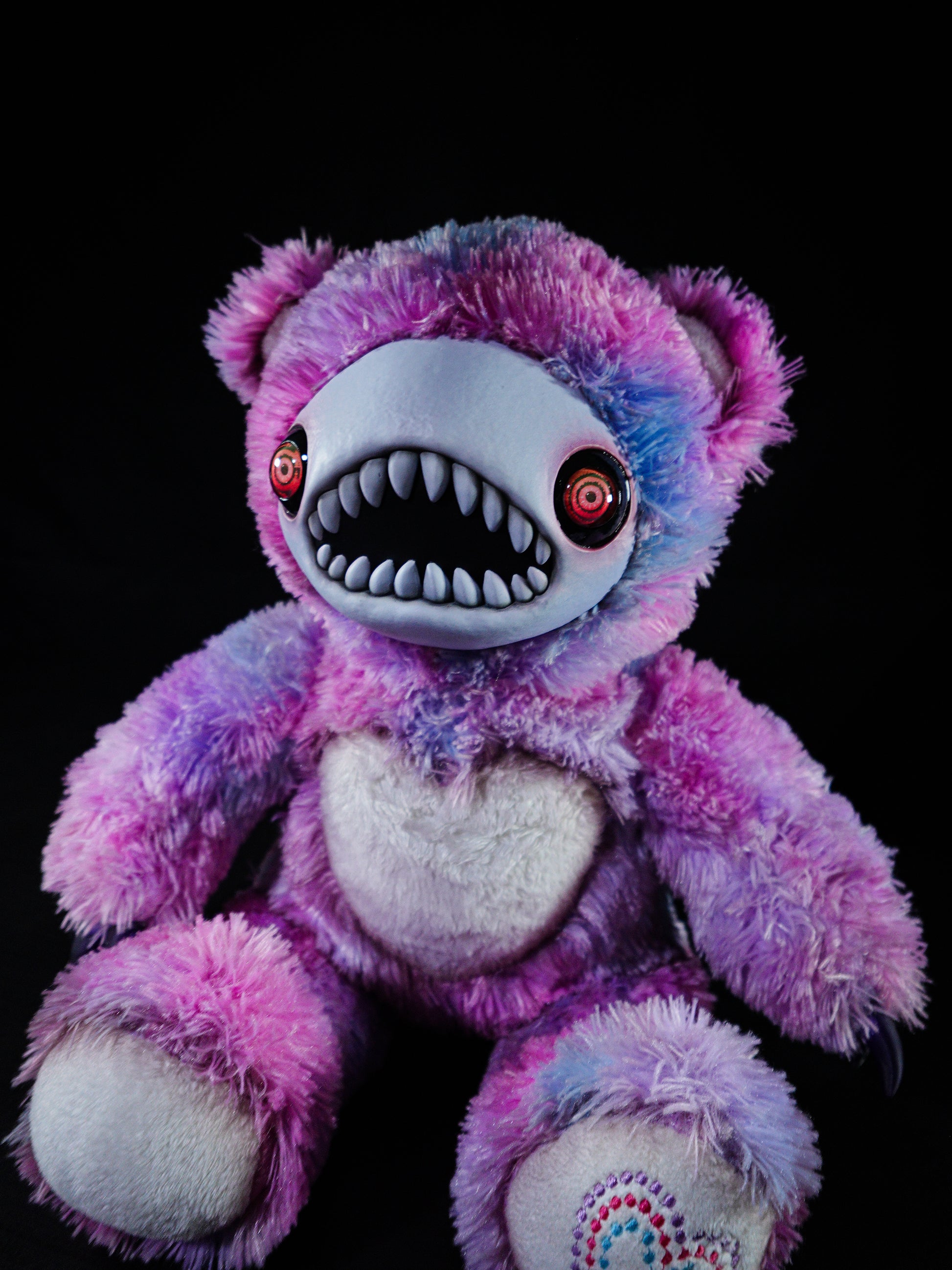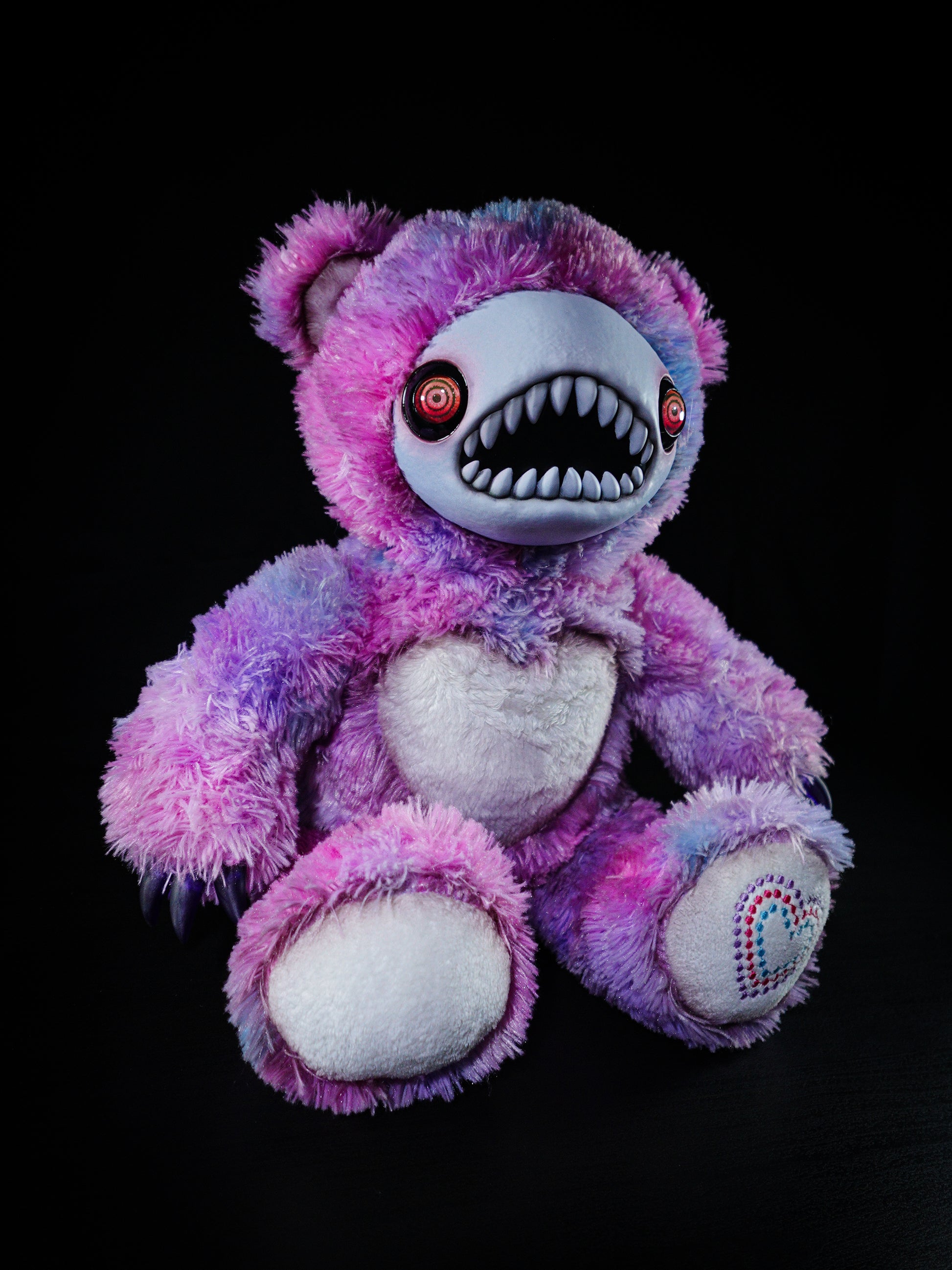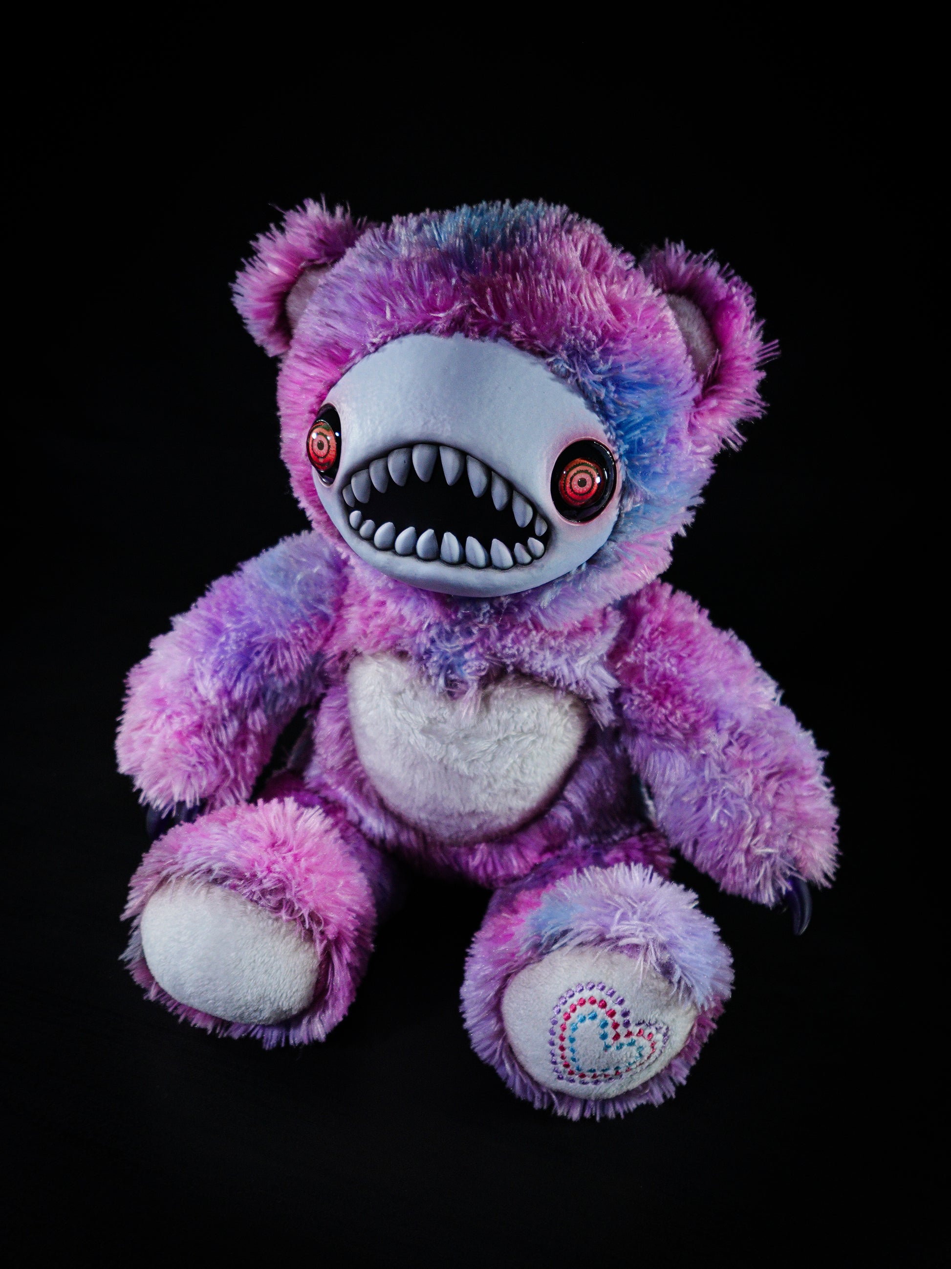 This 13-inch howling beast is meticulously handcrafted, blending bespoke craftsmanship and gothic charm. Crafted with 3D printed resin, its sculpted parts captivate with intricate details, while hand-painted strokes and airbrushing create an ethereal presence. Embrace the plush body, blurring the line between gothic artistry and cuddly companionship. Ready to ship in 1-2 days, this doll captures the essence of goth aesthetics, making it an ideal gift for alternative fashion enthusiasts. Experience the beauty in darkness with Skree, where creepy meets cute in it's anxious expression.