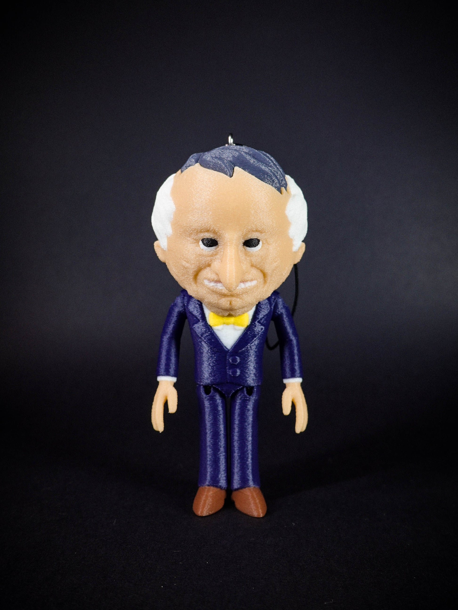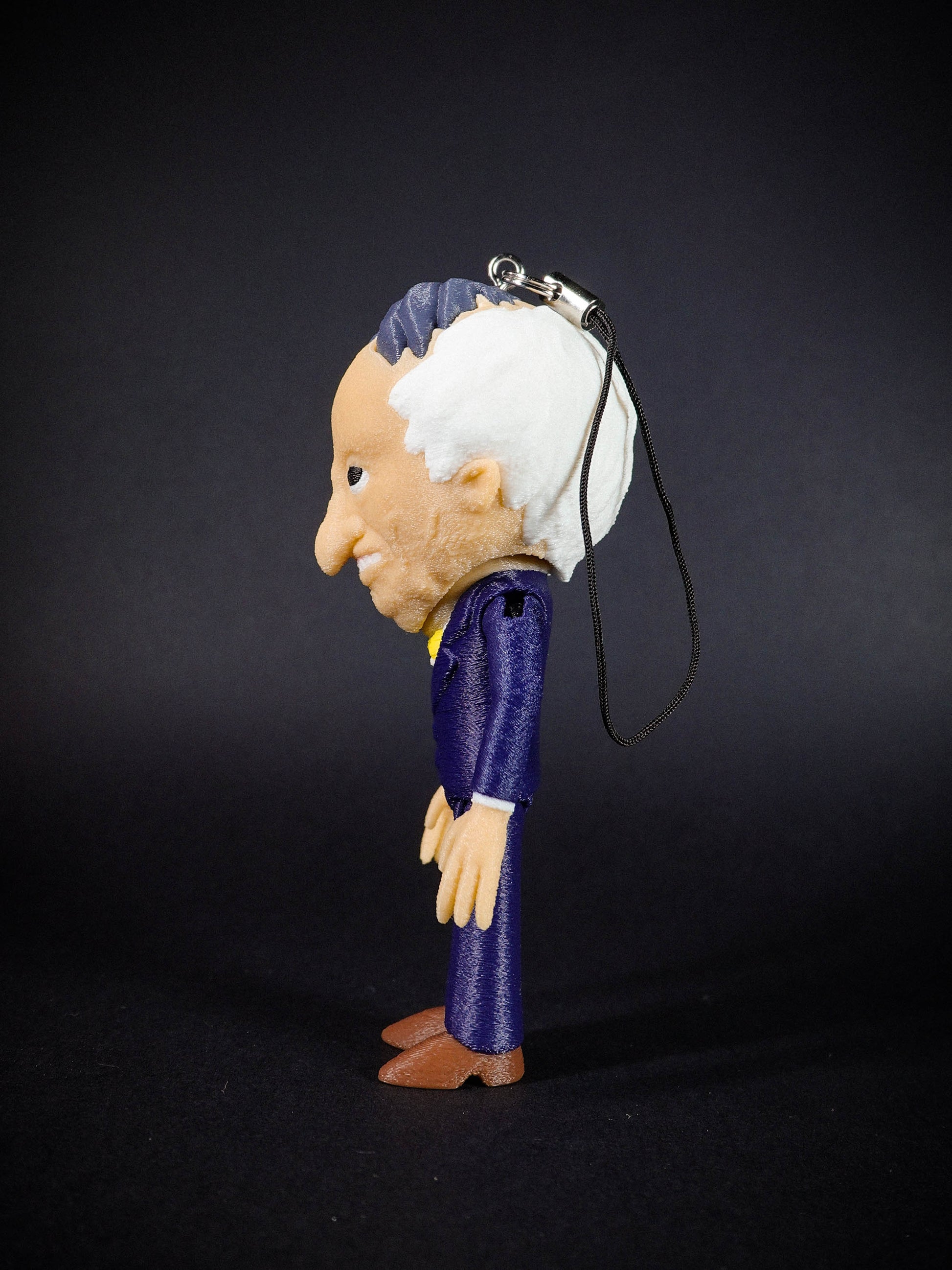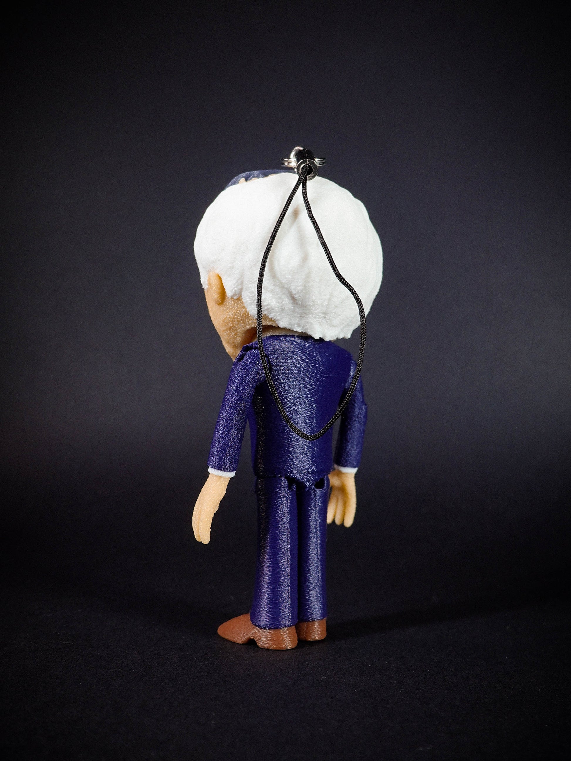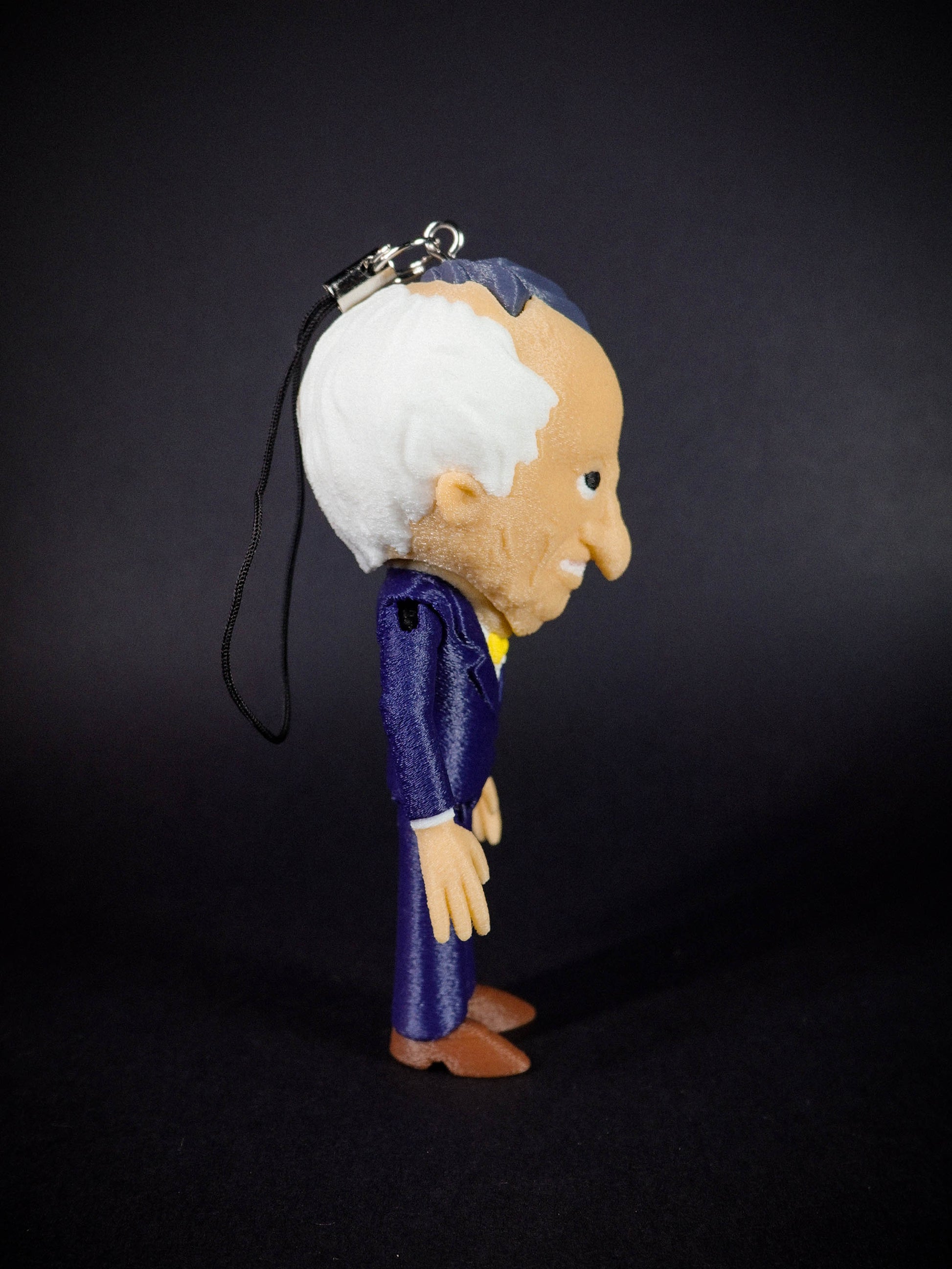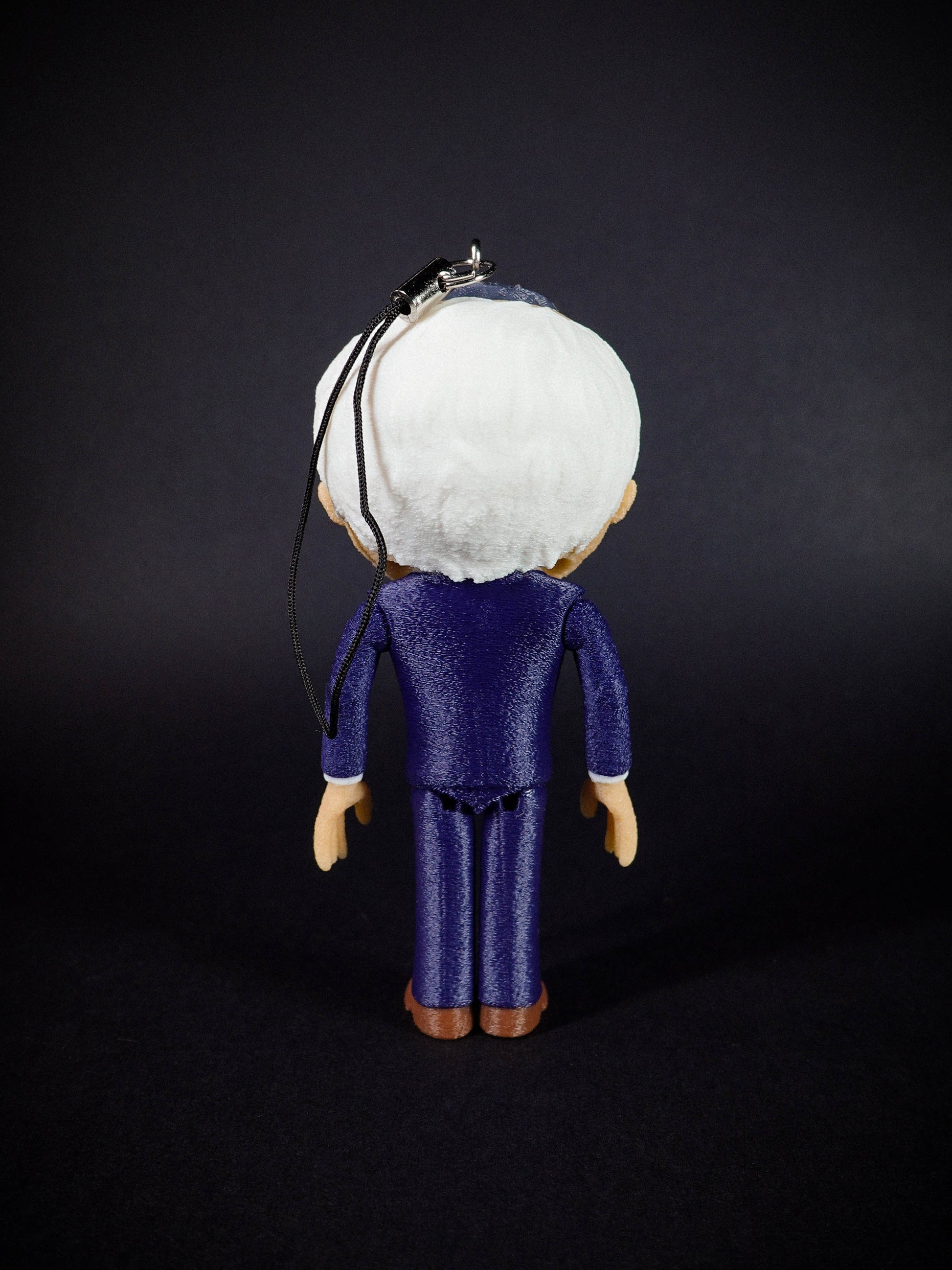 A charm lanyard is secured to the back of Mr Boss's head to allow for epic DANGLING action!
