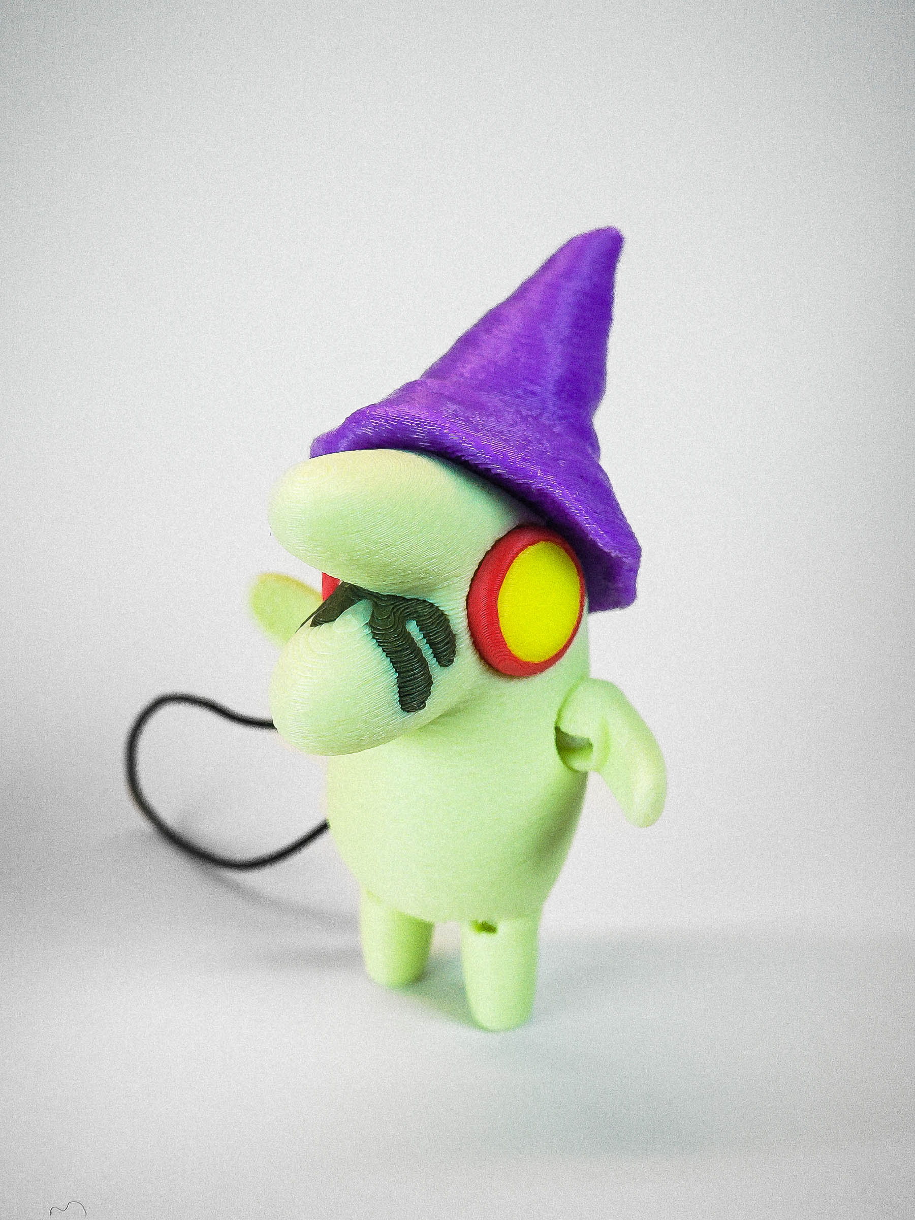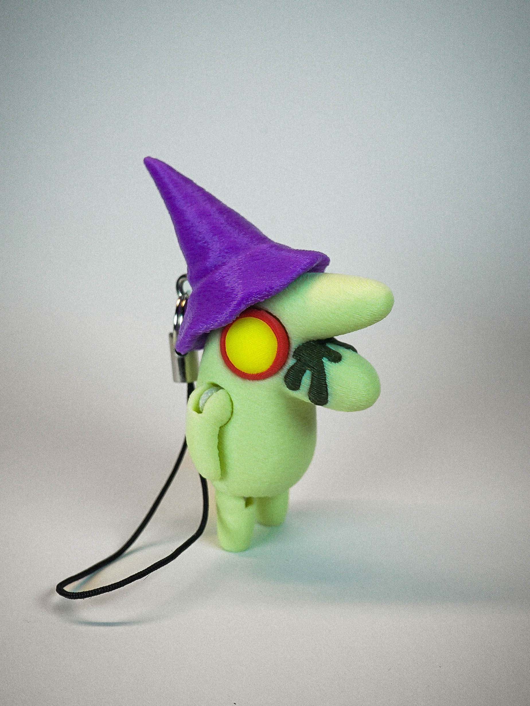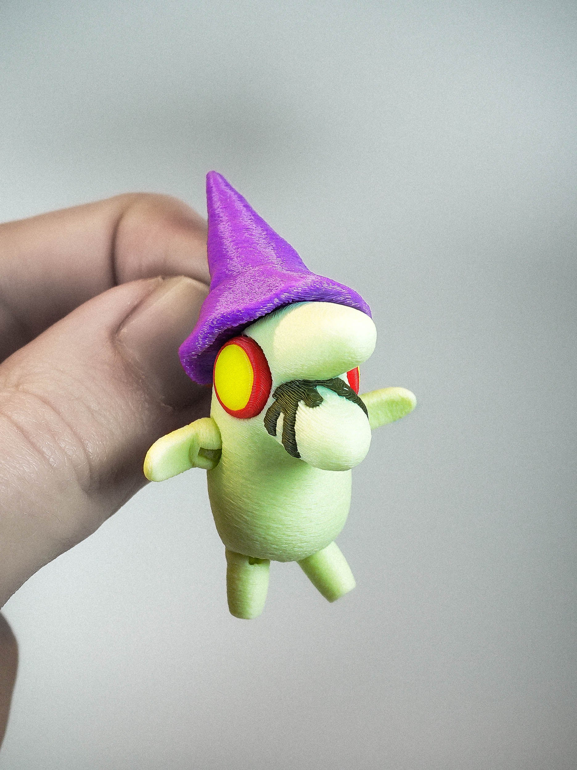 The posable Glep charm stands at 6cm tall from stumpy feet to wizard hat. His arms and legs are all jointed making him fully articulated!